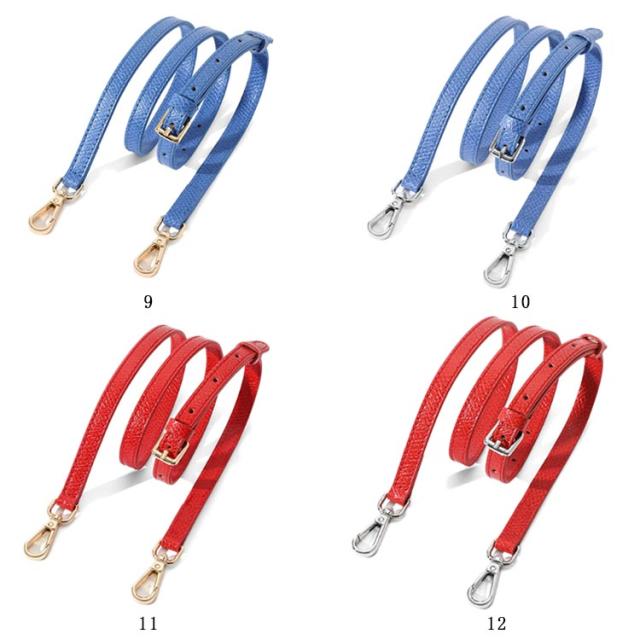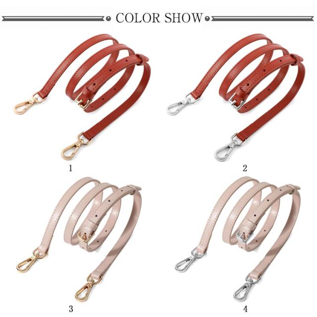 | 本革 ショルダーストラップ 選べるシルバー・ゴールド金具! 全10色 お手持ちのショルダーバッグに取り付けるレザー製の交換用ベルトです。 いずれも両端に金具が付いた脱着可能式。 幅1.2cmで、どんなコーデにも合わせやすく、95cmから115cmまで、長さ調節が可能です。 | |