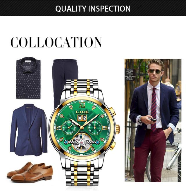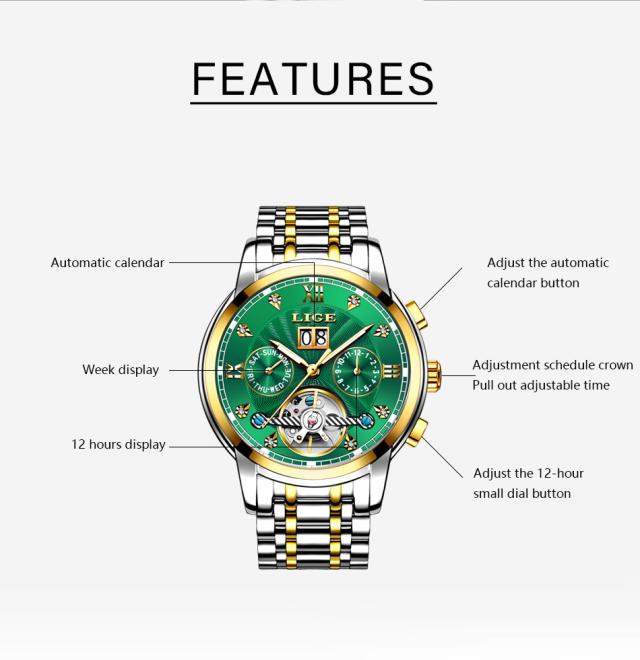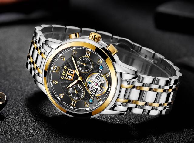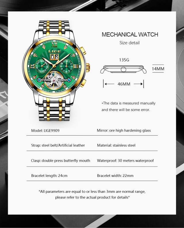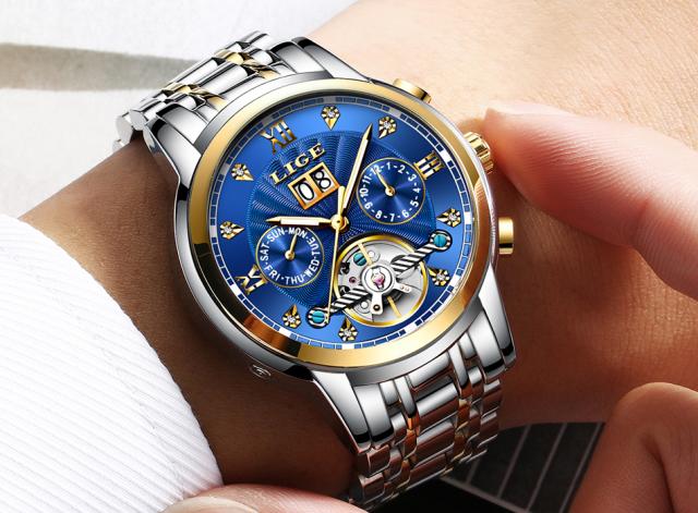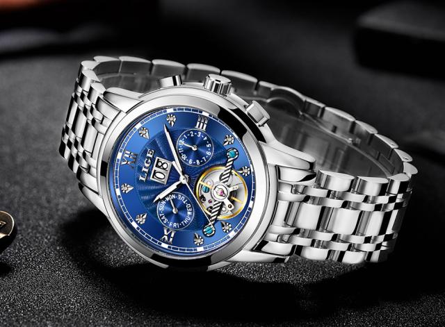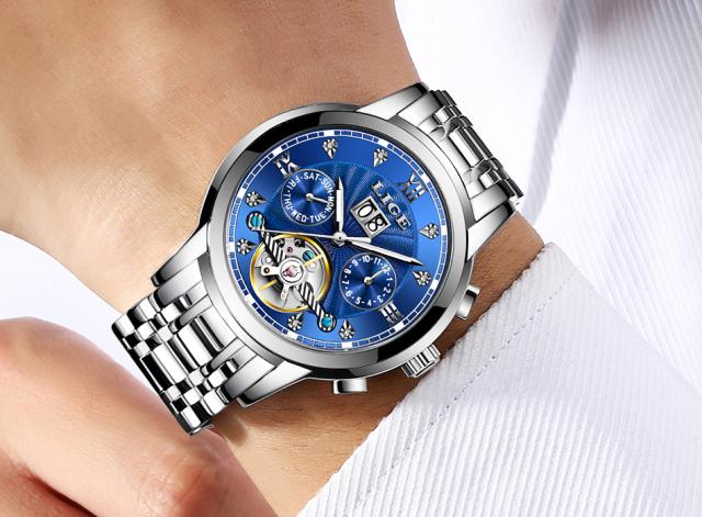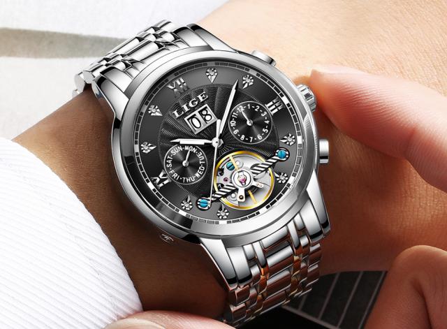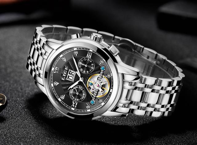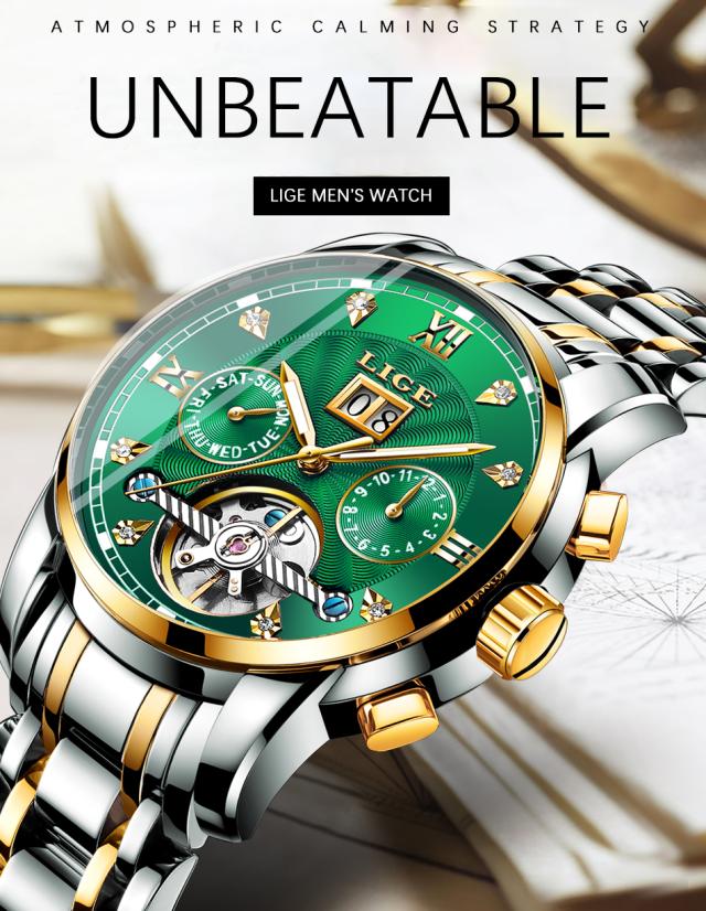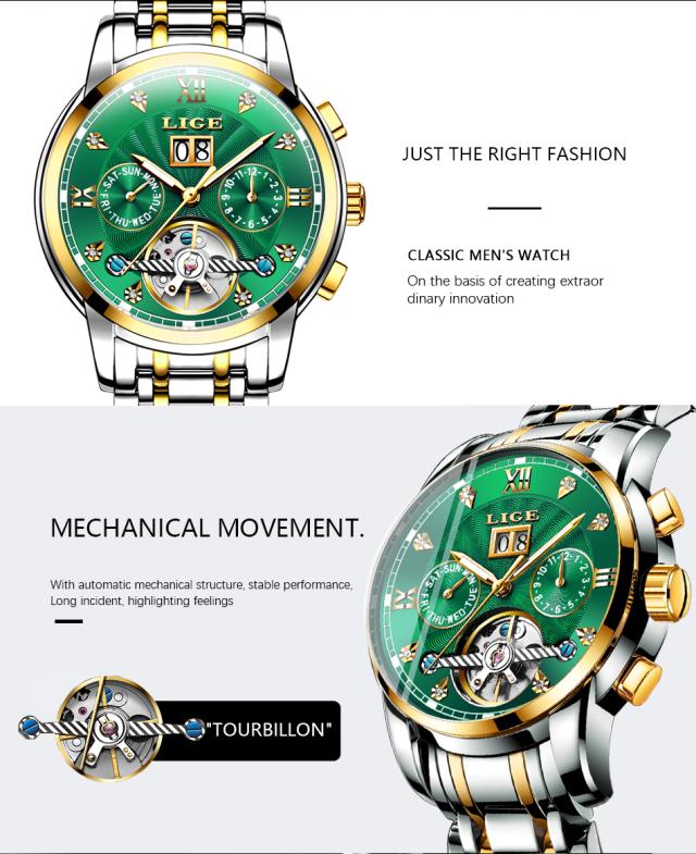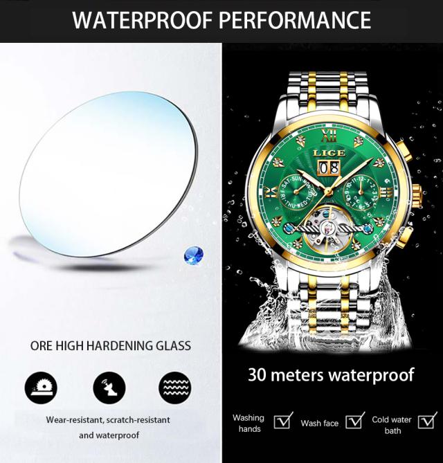Lige-男性用高級トゥールビヨン防水時計、自動スポーツリストウォッチ、機械式時計、カジュアルファッション、トップブランド、2024