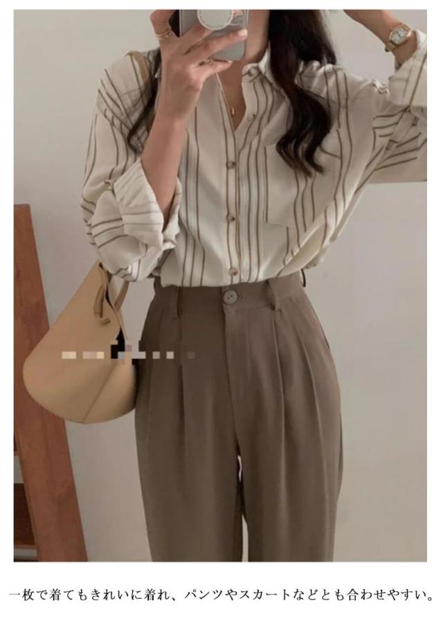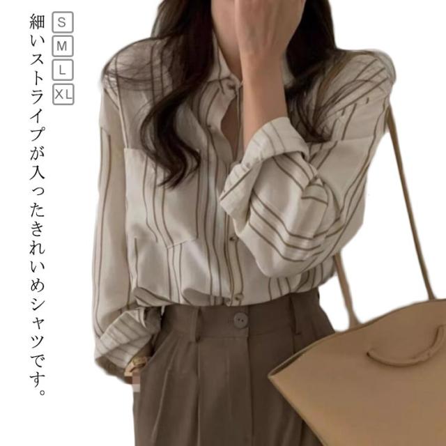 春 レディース シャツ 薄手 長袖 ブラウス トップス ストライプシャツ カジュアルシャツ 夏 通勤 オフィス