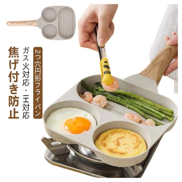 仕切り お弁当 IH対応 片手鍋 キャラ弁 弁当 丸い かわいい 電磁調理器 フライパン ガス火対応 こども 料理 子供 フライパン クッキング 調理 新生活 2つ穴円形フライパン くっつかず手入れ簡単 目玉焼き 卵焼き 卵焼き器