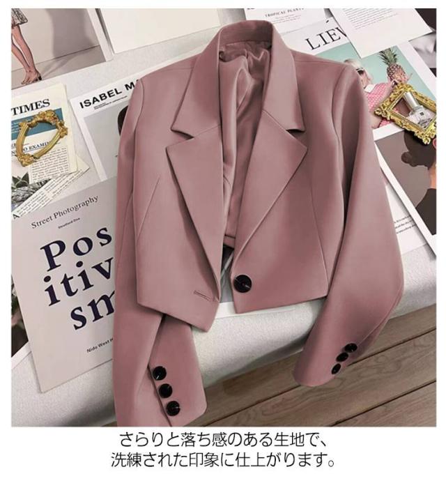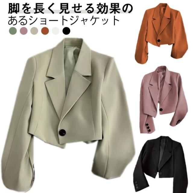 短め オフィスカジュアル テーラードジャケット ジャケット レディース ショート丈 ショートジャケット 春秋 カジュアル オフィス フォーマル アウター 通勤 ジャケット ワンボタン 大きいサイズ 体型カバー 大人女性 無地 シンプル OL