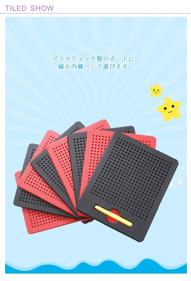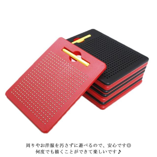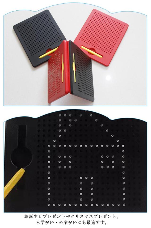 | 子どもの知育玩具男の子と女の子を問わず、だれでも簡単におえがきを楽しめる子供のおもちゃ。子供たちは想像力を使って絵、形、文字、数字を描くことができます! プラスティック製のボードに、磁石内蔵ペンで遊びます。 付属のマグネットペンでボードをなぞって中のボール(鉄球)を引き上げ、字や形、絵を描いてみよう! 金属球は磁気スタイラスペンで表面に引き付けられ、ペンや指でボールを消してやり直すことができます。 大人も子供も楽しく遊べる知育玩具のマグネットタブレットです。 周りやお洋服を汚さずに遊べるので、安心です◎ 何度でも描くことができて楽しいです♪ お誕生日プレゼントやクリスマスプレゼント、入学祝い・卒業祝いにも最適です。 | |