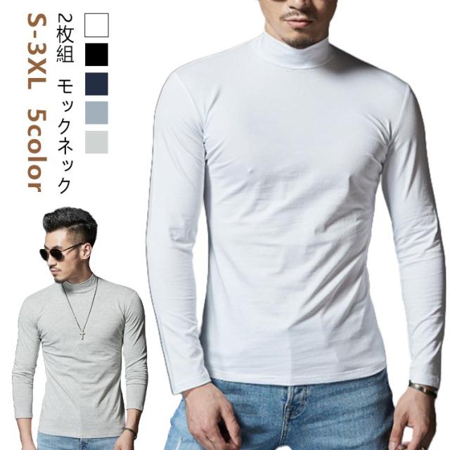 無地 ロンT 長袖Tシャツ タートル 黒 タイトフィット ハイネック カットソー インナー モックネック 無地 長袖 【2枚セット】Tシャツ ホワイト グレー 細身 白 スリム 秋 秋服 秋物 秋冬 吸汗速乾 アンダーシャツ 【2枚セット】Tシャツ スポーツ 現場 作業着
