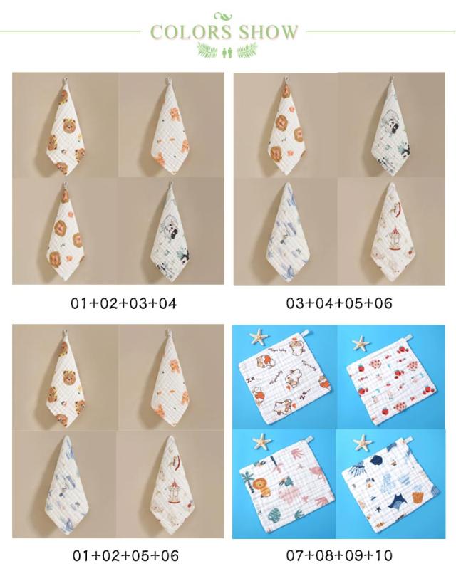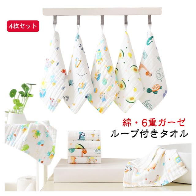 手拭き 6重ガーゼ コットン 布巾 タオル ガーゼ ハンドタオル タオルエプロン 動物 保育園 キッチン 綿 ギフト 内祝い 【4枚セット】ループ付き 新入学 ループタオル ループ付 新入園 ガーゼタオル ハンカチ キッズ ベビー 女の子