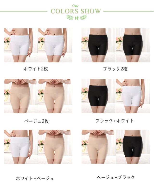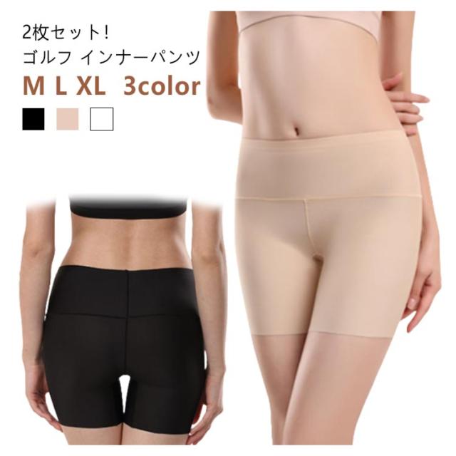 無地 ホワイト アンダーウェア 2枚セット!ゴルフ インナーパンツ ペチパンツ 通気性 黒 ブラック 白 伸縮性 レディース ペチコート レギンス 2枚セット!ゴルフ 3分丈パンツ 透け防止 スパッツ ペチパン