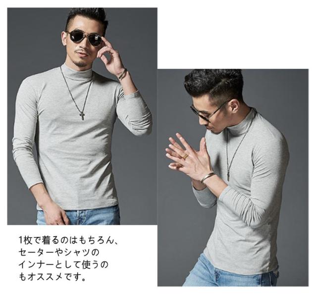 【2枚セット】Tシャツ 無地 メンズ 長袖Tシャツ 無地 ハイネック ロンT タイトフィット インナー モックネック 黒 白 アンダーシャツ ホワイト 長袖 グレー 細身 スリム 秋 秋服 秋物 秋冬 吸汗速乾 【2枚セット】Tシャツ タートル スポーツ 現場 作業着