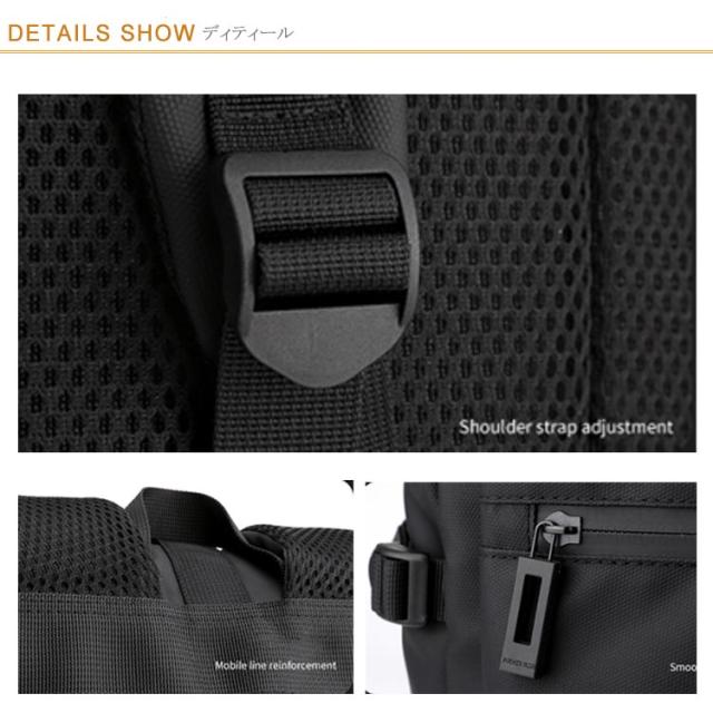 | ビジネスもカジュアルも使えるおしゃれな防水リュック。 収納量に合わせて調節できるロールトップデザイン、大きい開く口で物の出し入れもスムーズ。 背面と肩ベルトはクッション入りのメッシュ素材で、通気性抜群でストレスを軽減。 サイドポケット、フロントジップポケットなど小物を入れるのに便利なポケットもあり、綺麗に小物を整理整頓可能。 街に自然に溶け込むスタイリッシュなデザインで、ビジネスはもちろん、日常使いにもピッタリ。 | |