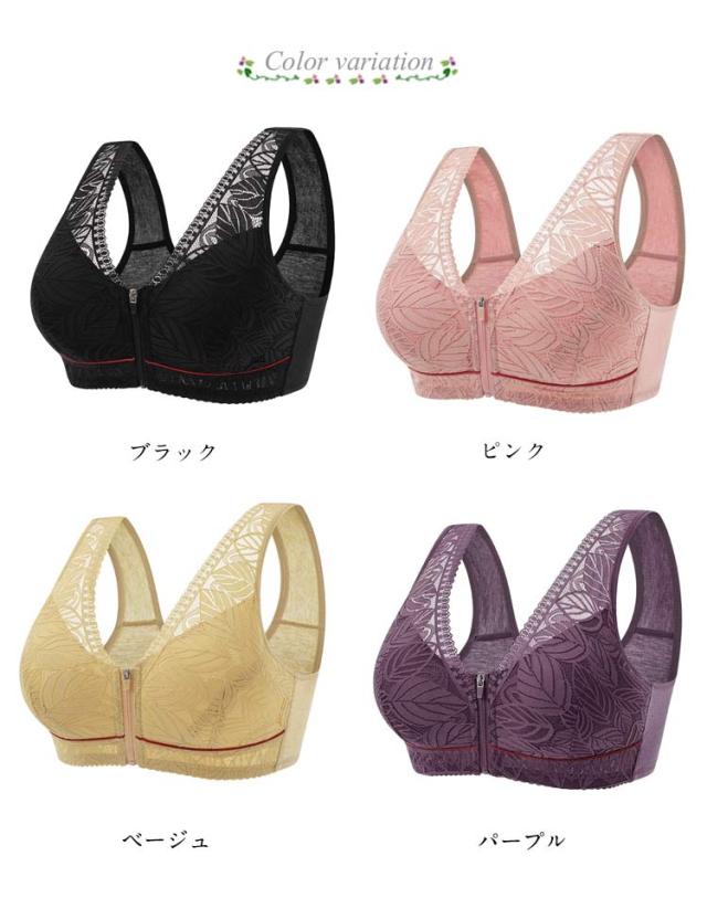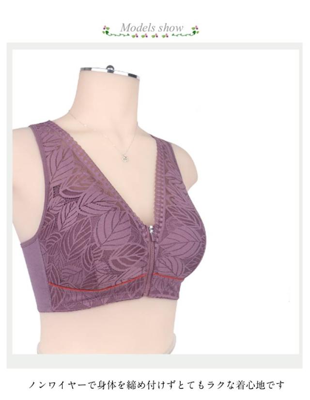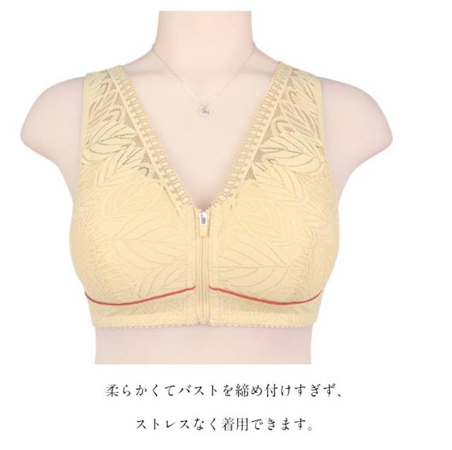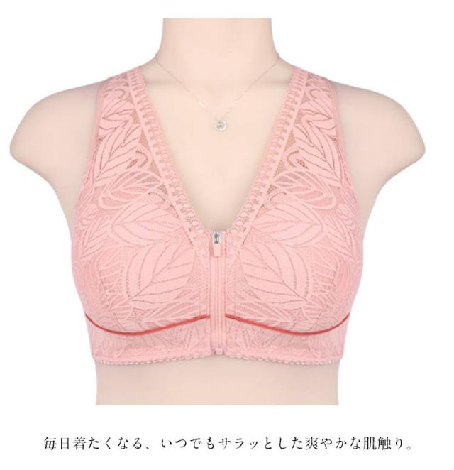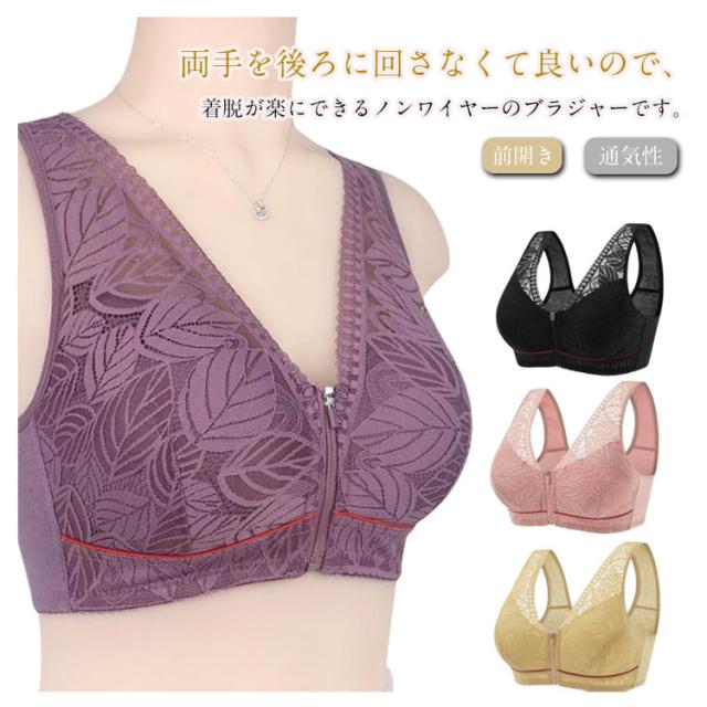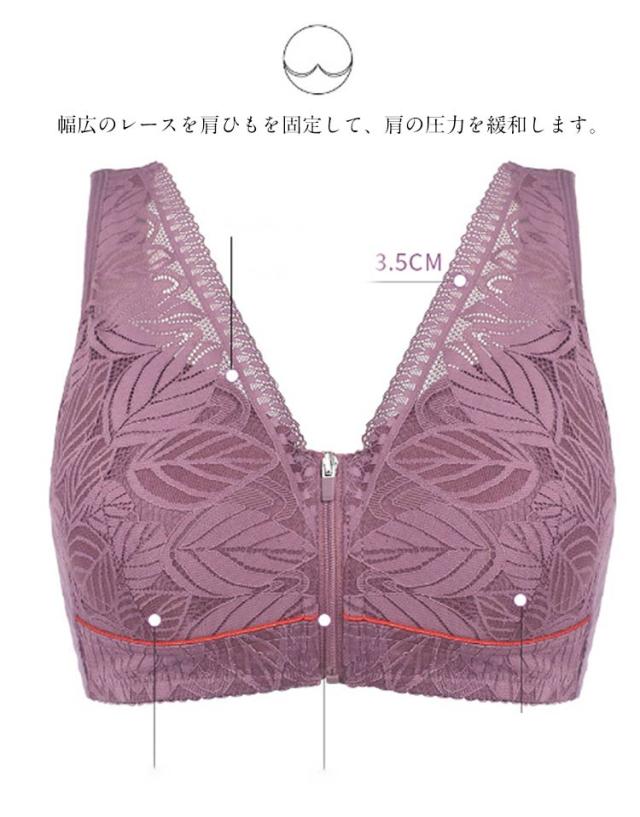 レディース ブラジャー フロント 前開き 大きいサイズ 乳がん ノンワイヤー 通気性 肩ひも 高齢者 ファスナー レース ブラ 幅広 インナー 下着 介護 脇高 締付け感なし 前開き 安定感 母の日 敬老の日 ギフト