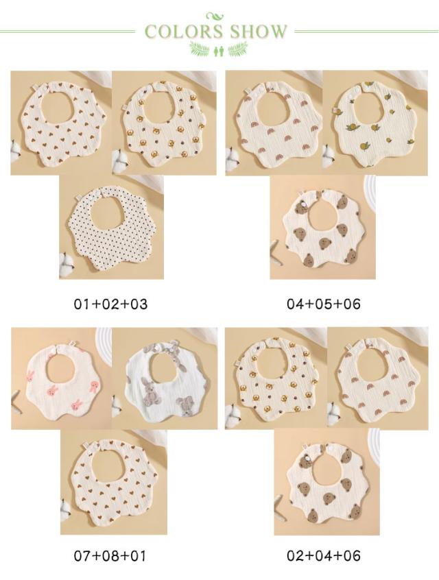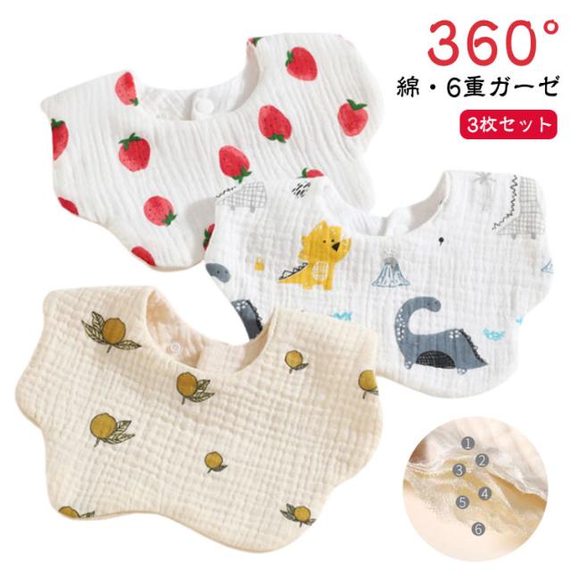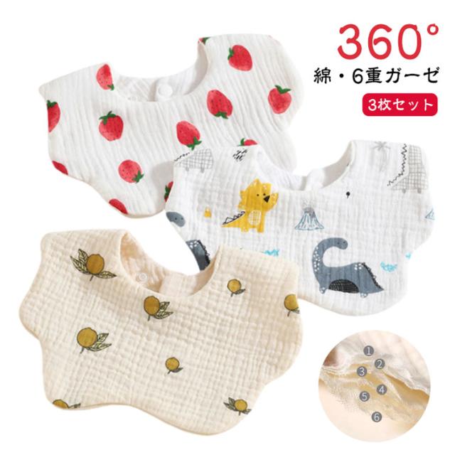 3枚セット よだれかけ 360° スタイ スタイ 出産祝い 赤ちゃん スナップボタン かわいい おしゃれ シンプル 男の子 よだれカバー 通気性 ビブ 女の子 6重ガーゼ 吸収性 柔らかい 保育園 綿 インスタ 映え
