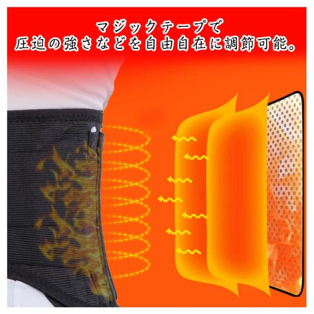 | 男女兼用!腹部、腰両面発熱、自発熱磁気サポーター、温かさキープ!寒い時期の腰を守ってくれる発熱の腰サポーター。 体温による自己発熱の効果で、腰とお腹をじんわりと暖かくなります。 マジックテープで圧迫の強さなどを自由自在に調節可能。 しっかりととめることが出来て腰にフィットして支えられてる感じがあります。 骨盤ベルトやウエストのダイエットベルトとしても使用可能。 | |