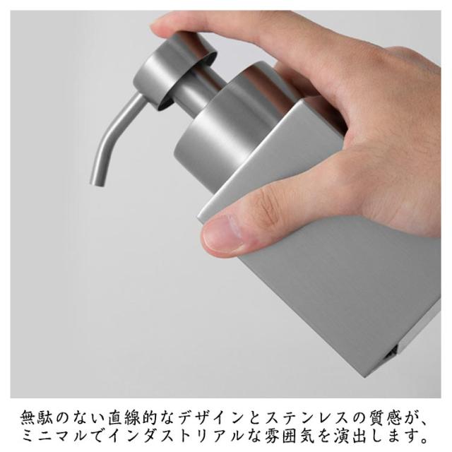 | シンプルで洗練されたデザインのソープディスペンサー。 無駄のない直線的なデザインとステンレスの質感が、ミニマルでインダストリアルな雰囲気を演出します。 どんなサニタリールーム・洗面所・キッチンにも馴染んでスタイリッシュに。 コンパクトなサイズ感!容量約200mlのコンパクトなサイズだからキッチンや洗面所で場所を取らず置くことが可能。 360度まわり、すぐに使えるからノンストレス。押し心地は少し重めで、ソープの使い過ぎを防ぐ。 | |