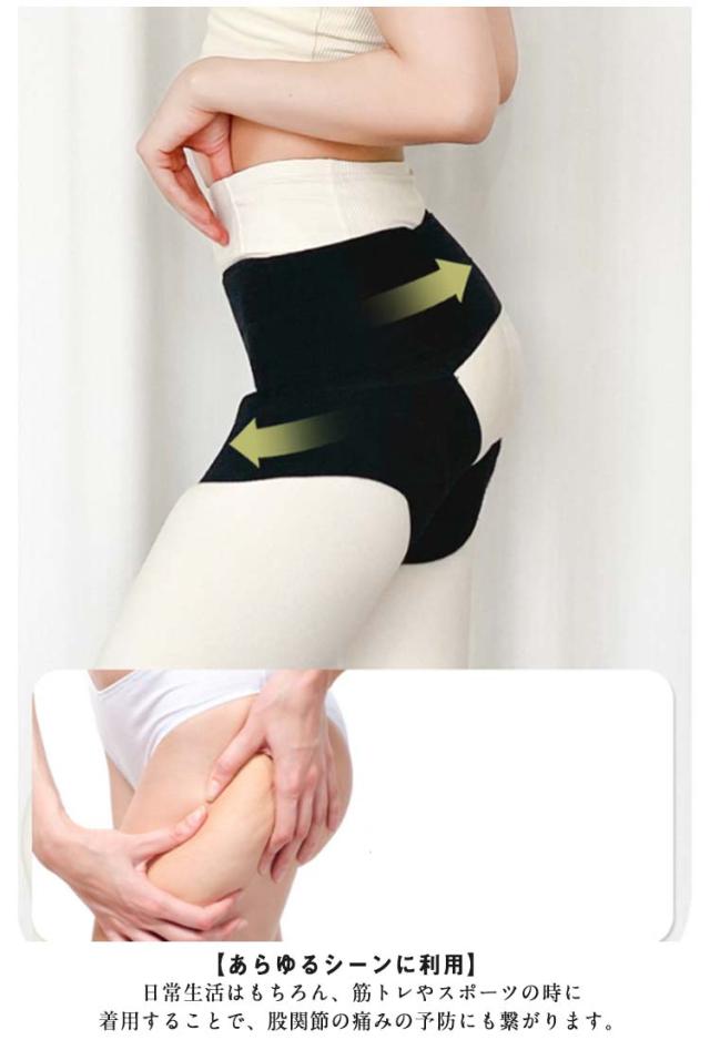 | 股関節サポーター。 【股関節を支えるサポーター】関節を固定し筋肉をサポートすることで、股関節の痛みを和らげ動作をスムーズにする役割を担っています。腰から太ももにかけて全体を圧迫することで、筋肉の無駄な動きを抑制し、股関節への負担を軽減します。 【着け心地抜群】踏ん張る力をサポートしつつも、伸縮性に優れているので、軽快な動きも妨げません。 【通気性に優れた】薄手の生地で蒸れにくく、肌に優しい設計になっています。 【サイズ調整も簡単】マジックテープで固定でき、腰・太もものサイズに合わせて簡単に調整が可能です。 【あらゆるシーンに利用】日常生活はもちろん、筋トレやスポーツの時に着用することで、股関節の痛みの予防にも繋がります。 【手洗い可能】水またはぬるま湯での手洗いが可能なので、手軽に洗濯できて、衛生面も安心です。 | |