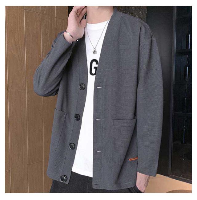 カーディガン トップス アウター スウェット ワッフル パーカー 通勤 トレーナー 前開き 長袖 学生服 通学 洗える メンズ ポケット付き カジュアル お洒落 Vネック 無地 カーディガン 大きいサイズ スポーツ