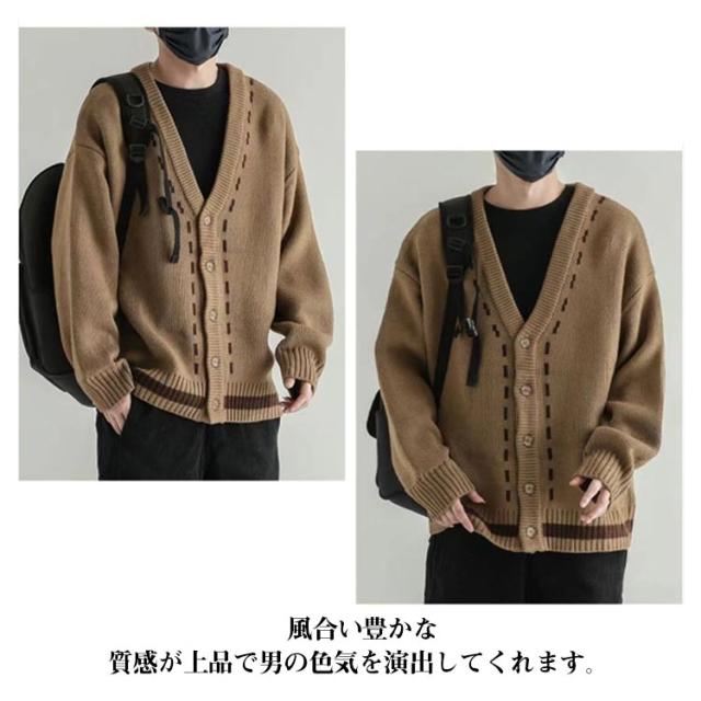 カーディガン メンズ 厚手 長袖 ストレッチ Vネック 春秋 ビジネス カジュアル スクールカーディガン ニットカーディガン 無地 防寒 暖かい 長袖セーター ニットジャケット ライトアウター きれいめ 秋服 冬服 カーデ おしゃれ 大人 20代 30代 送料無料