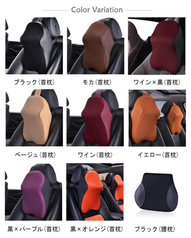 | 色 | ブラック(首枕) モカ(首枕) ワイン×黒(首枕) ベージュ(首枕) ワイン(首枕) イエロー(首枕) 黒×パープル(首枕) 黒×オレンジ(首枕) 黒×グレー(首枕) ブラック(腰枕) モカ(腰枕) ワイン×黒(腰枕) ベージュ(腰枕) ワイン(腰枕) イエロー(腰枕) 黒×パープル(腰枕) 黒×オレンジ(腰枕) 黒×グレー(腰枕) |