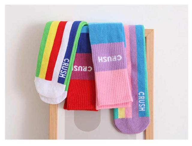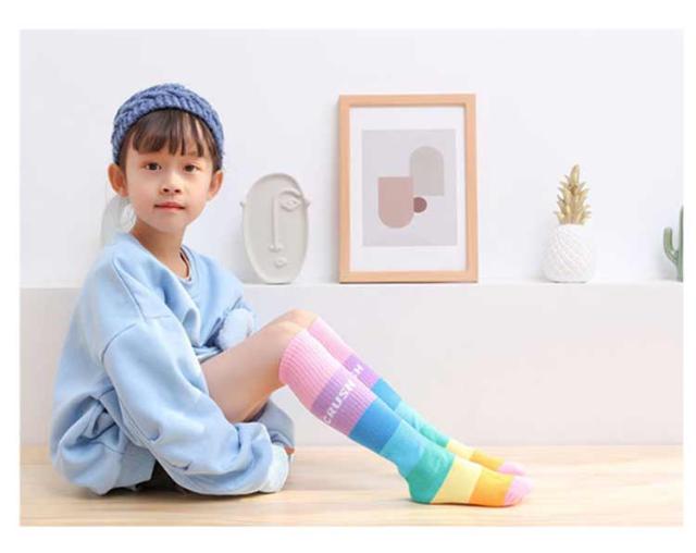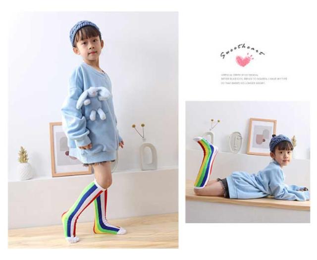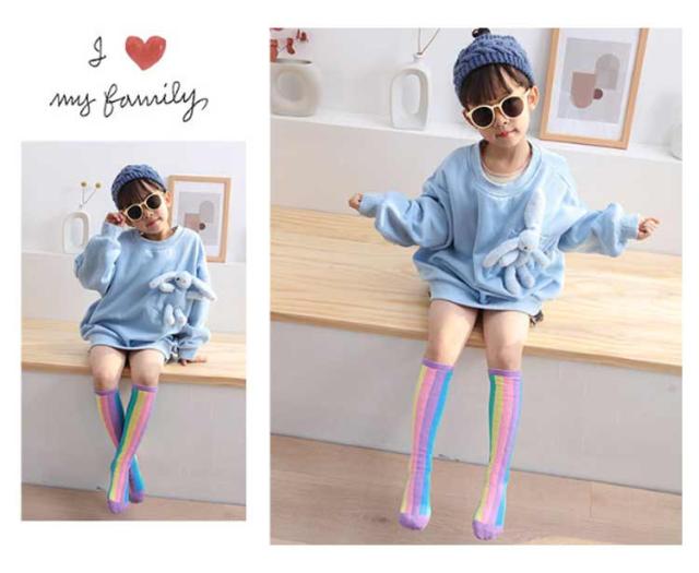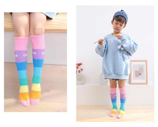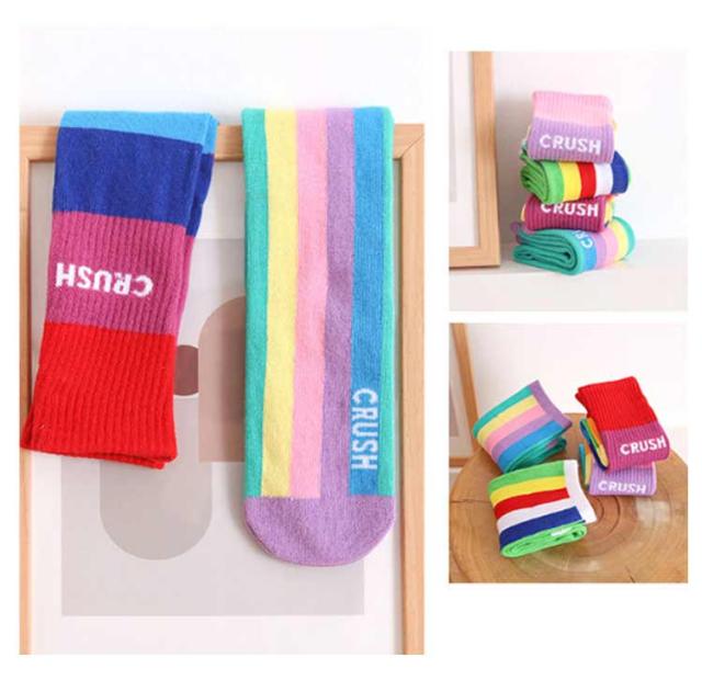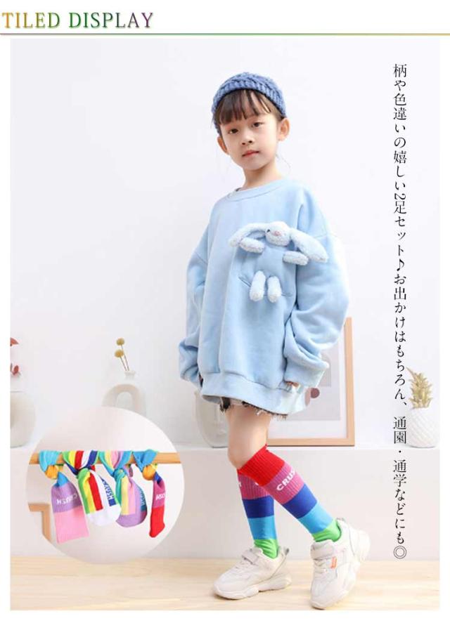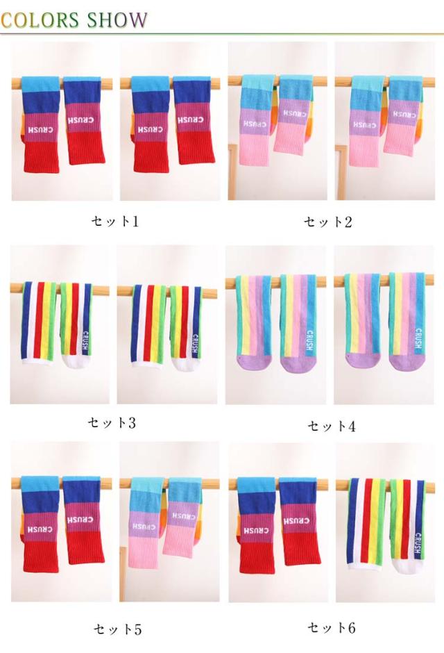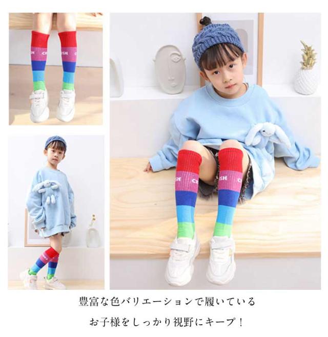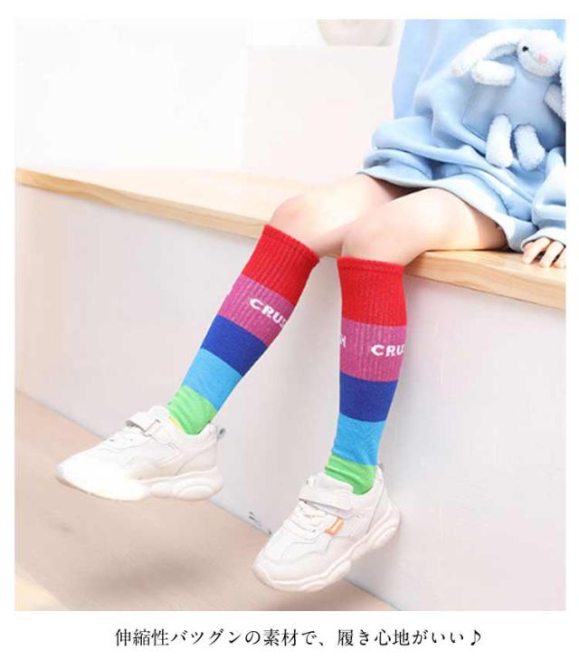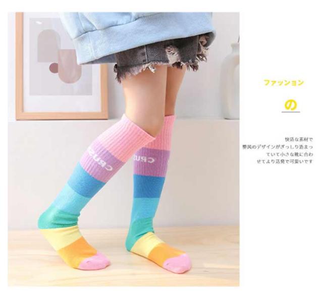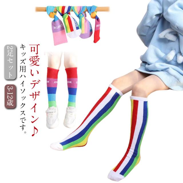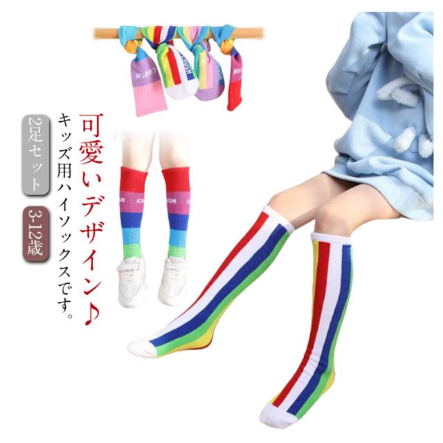送料無料 ハイソックス キッズ ジュニア 2足セット 靴下 子供用 グラデーション ストライプ 可愛い おしゃれ カジュアル 小学生 幼稚園 保育園 女の子 カラフル 運動会 春秋 薄手