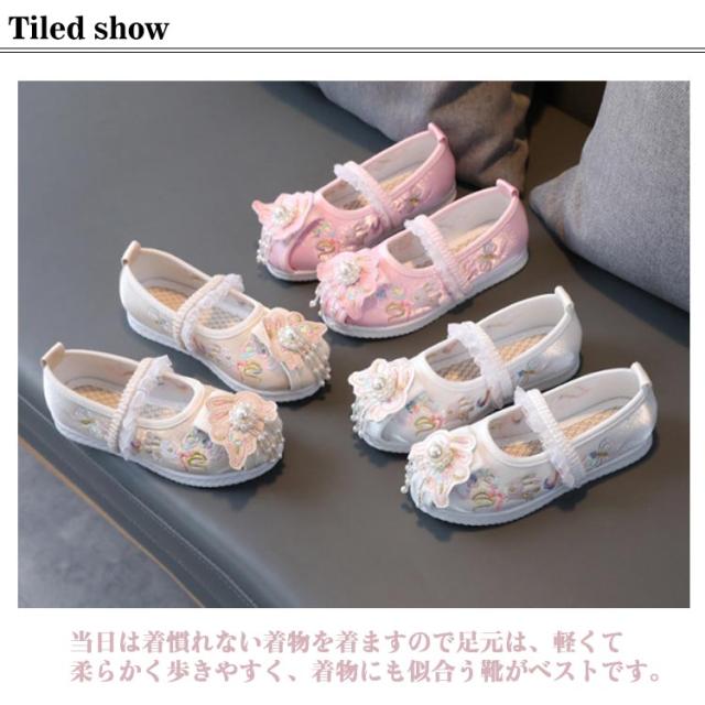 | 超カワイイ花柄の刺繍がオシャレなデザイン、お子様のかわいらしさを引き立てる七五三の靴です。 当日は着慣れない着物を着ますので足元は、軽くて柔らかく歩きやすく、着物にも似合う靴がベストです。 ゴムの甲ベルトも付いているのですぽっと脱げてしまうこともありません。神社の砂利でもへっちゃらです。 | |
