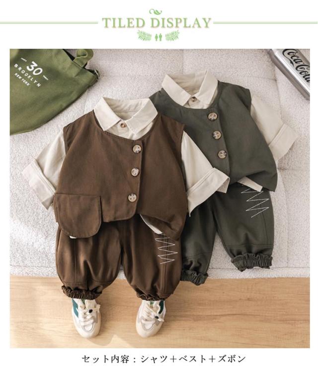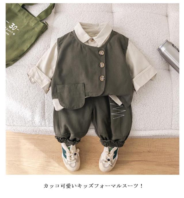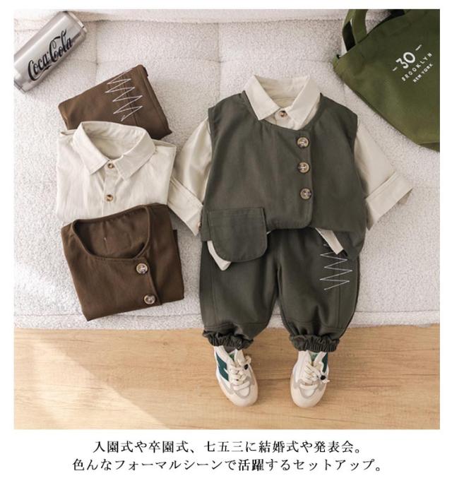 入園式 子供服 90 110 ベビー フォーマル ベビー服 100 120cm 七五三 入園式 スーツ 赤ちゃん 小学生 子供 正装 3点セット 男の子 春 秋 冬 卒園式 ズボン 入学式 法事 ピアノ 発表会 結婚式 セットアップ キッズ ベスト シャツ