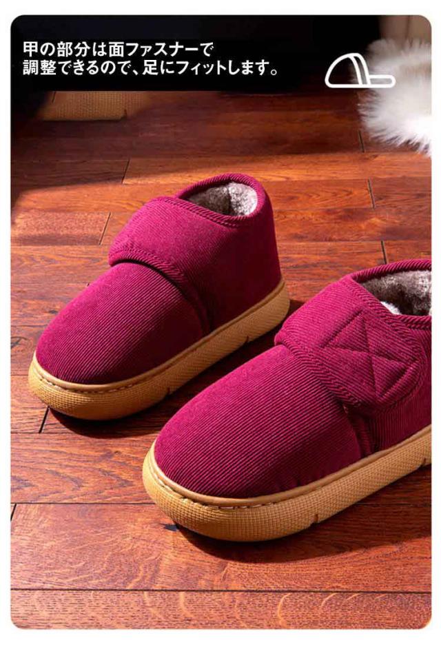 | ・寒い季節の室内で足元ポカポカ! ・ブーツタイプでぬっくぬく♪ ・くるぶしまでスッポリ! ・厚めのソールで床付き感や冷感を防ぎます。 ・甲の部分は面ファスナーで調整できるので、足にフィットします。 ・裏面はすべりにくい加工を施しています。 | |