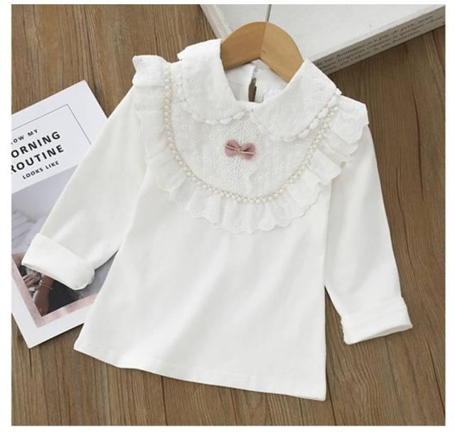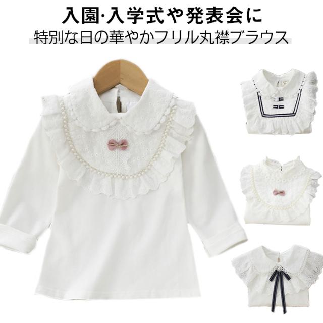 スクールシャツ 丸襟 長袖 レース フリル 女の子 ガールズ 制服 キッズ 学生服 白シャツ リボン付き ブラウス 通学 通園 綿 コットン 白 フォーマル 幼稚園 保育園 小学生 入園式 卒園式 入学式 七五三 お受験 春 秋 冬