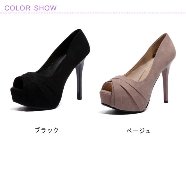 パンプス オープントゥ スエード調 ピンヒール 12cm 超ハイヒール ストーム 3cm 前厚 痛くない サンダル パーティーシューズ 結婚式 キャバクラ 黒 通勤 オフィス 美脚パンプス ブライダルシューズ 結婚式 パーティ 靴