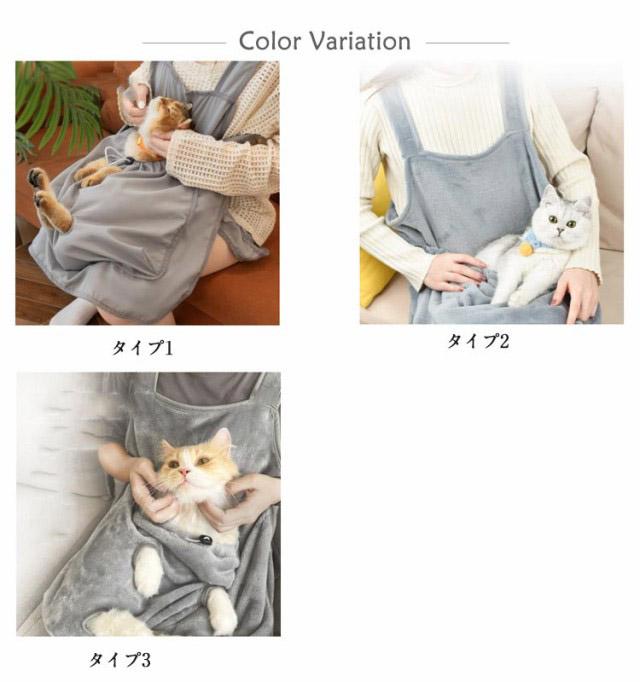 | 3タイプ選べる!猫や小型犬を入れるためのエプロンです。 ペットをリラックスさせ、快適にエプロンで眠らせます。 両面フリース素材で作られるので、ふわふわでペットの肌にも優しいです。内側の暖かい空気を逃さない高い保温性を持っています。 ポケットに調整できる紐が付いて、ペットの飛び出し防止できます。 後ろがボタンが付いており、着脱も楽になります。 猫耳の形で、見た目可愛すぎます! | |