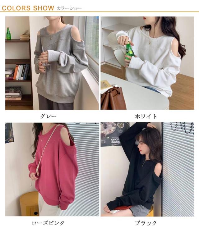 スウェット トップス トレーナー 肌見せ 春秋 肩出し 肩あき 肩出し カットソー 長袖トレーナー スウェット 肩開き プルオーバー トップス レディース Tシャツ カジュアル 肩開き 肩見せ 大きいサイズ ゆったり 個性的 プルオーバー 無地