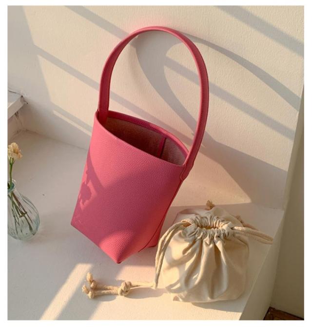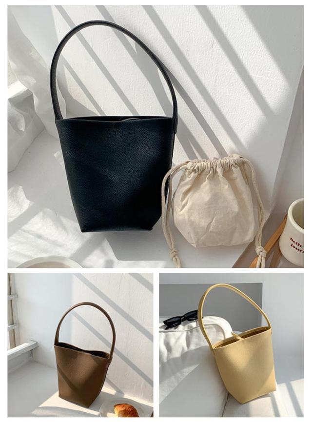 | 持つだけで簡単にトレンド感を楽しめる大人気のバケットバッグ。 流れるようなフォルムとゆったり入る収納が特徴で、日常の必需品をすっきりと収めることができます。 付属のコットン巾着バッグは貴重品の収納可能。 上品さのあるPUレザー仕様なので、肌触りが滑らか!ほど良い柔らかさがあり使いやすい◎ ワンハンドルの仕様が、ハンドル持ちにも、肩掛けにも、スタイルに合わせてお持ちいただけます。 スタイリッシュなフォルムで様々なコーデに合わせやすいシンプルデザイン。 大人のミニバッグはコンパクトなのに大容量がマスト。 通勤通学でも使いやすい大人可愛いカラーが豊富☆お気に入りがきっと見つかる! | |