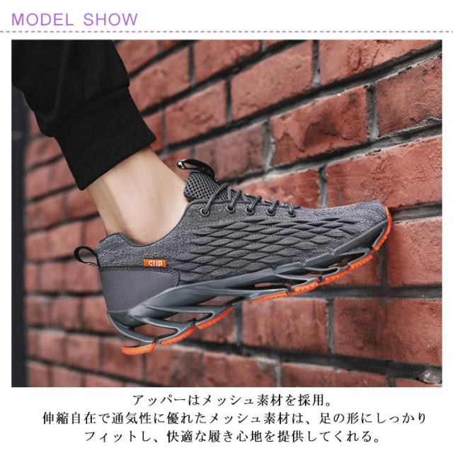 | 24-28cm!メンズ スニーカー。 アッパーはメッシュ素材を採用。伸縮自在で通気性に優れたメッシュ素材は、足の形にしっかりフィットし、快適な履き心地を提供してくれる。 デザインソールが柔軟性・弾性を兼ね備えておりいつでも快適にご使用いただけます。ストリートファッションにハマる、インパクト抜群のスプリングソール。足を組んだ時や、歩いたときに見せるデザイン性の高いソールは、見る者に鮮烈な印象を与える。 通気性と速乾性に優れたメッシュ素材で長時間履いても蒸れにくく、爽やかに感じる。ウォーキングなどにもおススメです。 履いているのを忘れるくらい足が軽い疲れ知らずの軽量デザイン、快適に歩くことができ、通勤、通学、トレーリングなどで幅広く活躍します。 | |