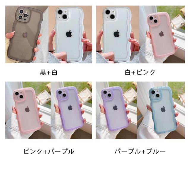 【2枚セット】iPhone16ケース クリアケース 透明 可愛い うねうね なみなみ iphone15 iphone16pro max iphone14 クリア 黒 韓国 耐衝撃 かわいい スマホケース ウェーブ おしゃれ SNS 大人かわいい 女子
