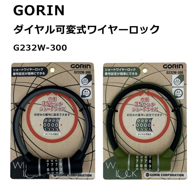 自転車 ダイヤル式 ワイヤーロック GORIN ゴリン 自転車用 ダイヤル可変式ワイヤロック 太さ 12mm 長さ 30cm 300mm 350mm ブラック カーキ ワイヤー錠 G232W-300