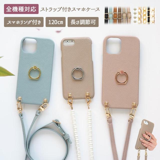 スマホケース ハード 全機種対応【レザーハードケース×スマホリング×選べるロングストラップ】メール便送料無料 受注生産