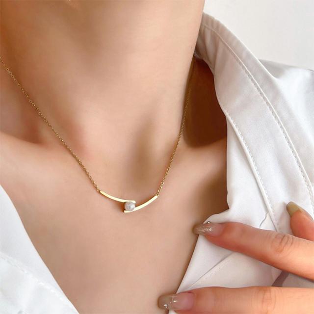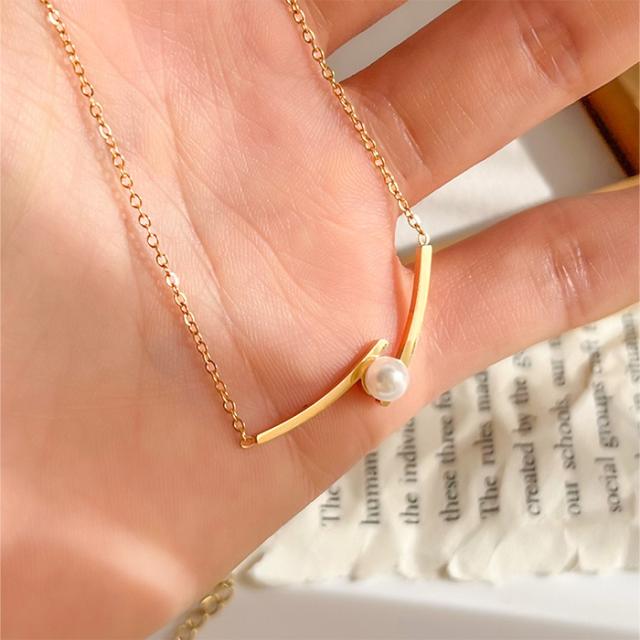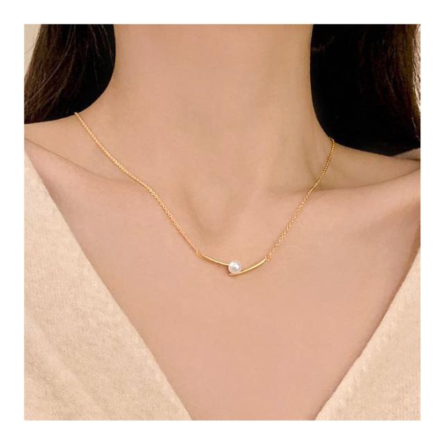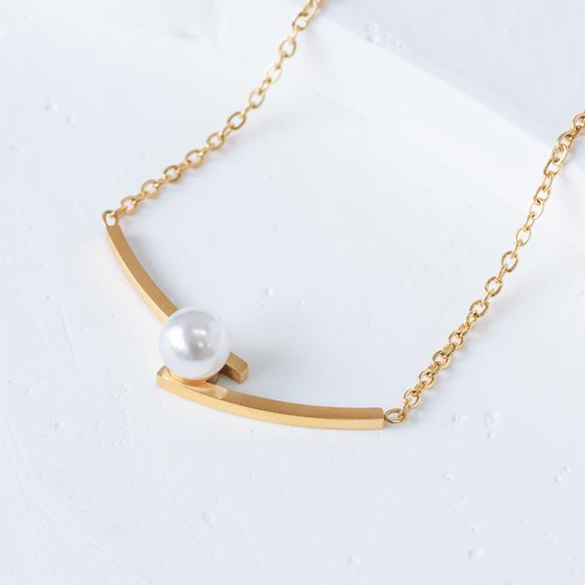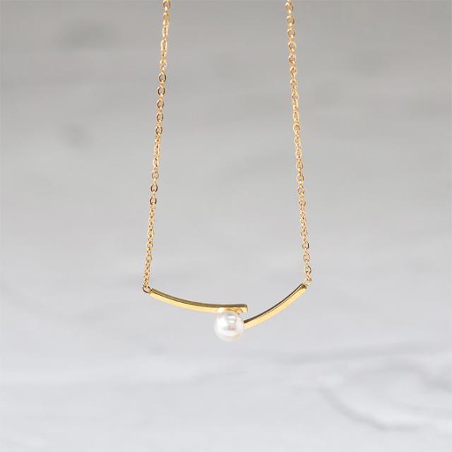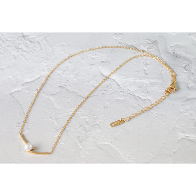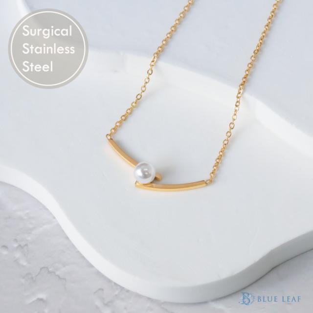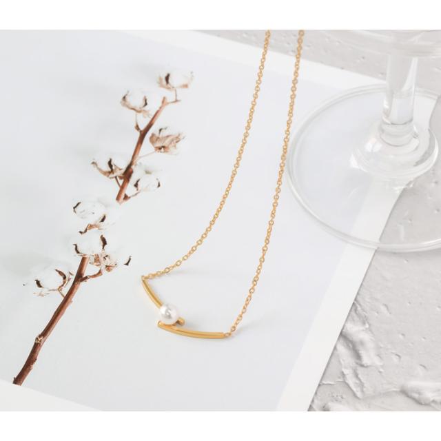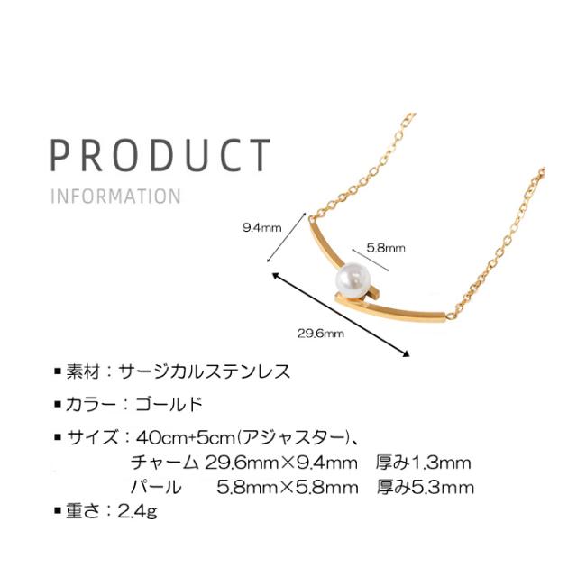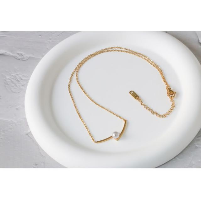 変色しにくい、変形しにくい、傷が付けにくい、 金属アレルギーに強いステンレスのネックレスです。 2本のゴールドのバーの間に一粒パールがあしらわれたネックレス。 デコルテラインをきれいに見せてくれ、シンプルで上品さがありながら華やかで存在感のあるデザインです。 どんな服装でも合わせやすいので普段使いはもちろん結婚式などのお呼ばれのシーンでも大活躍間違いなしです! |