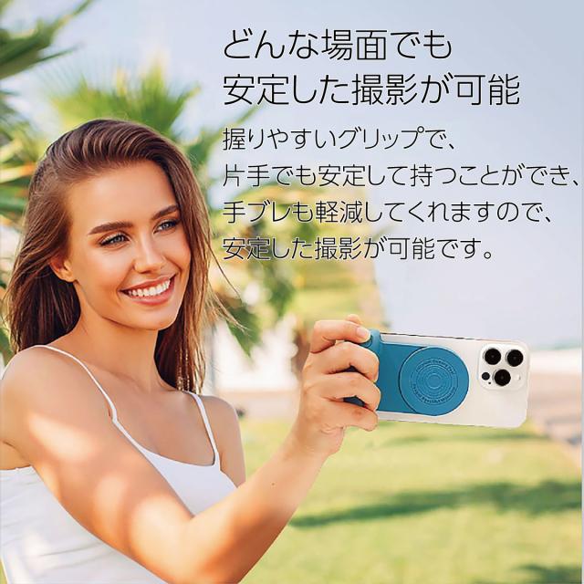 MagSafe対応 スマホ カメラグリップ スマホ用マグネット ステッカー付属 自撮り セルフィー 磁石吸着式 スタンド スマホ iPhone android