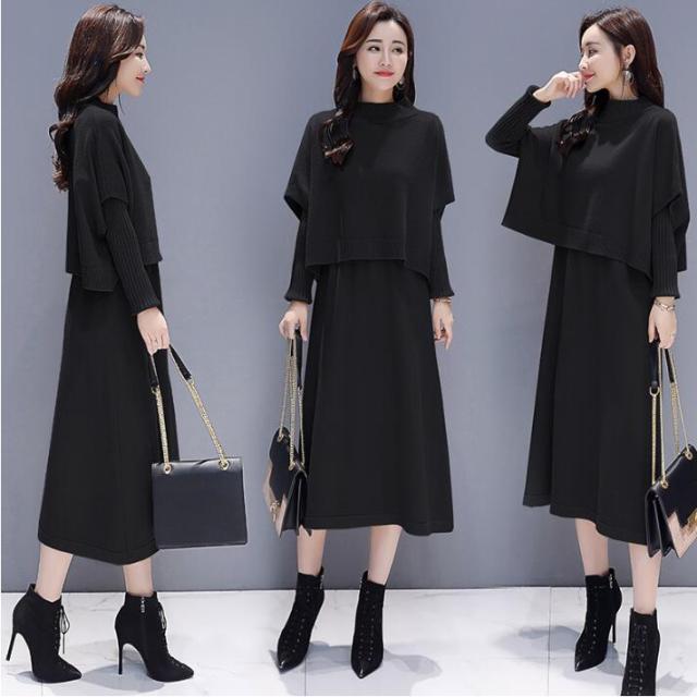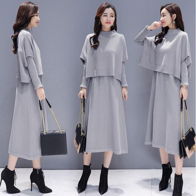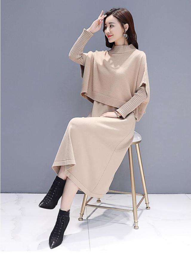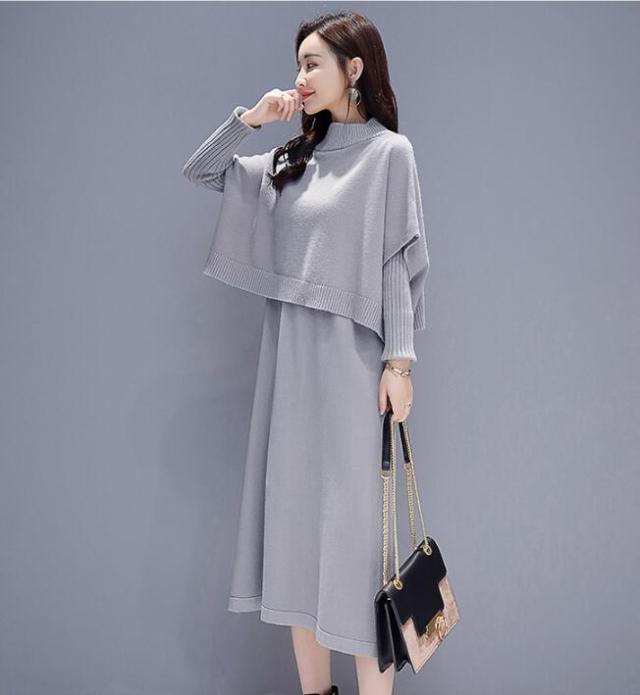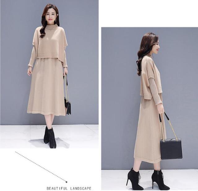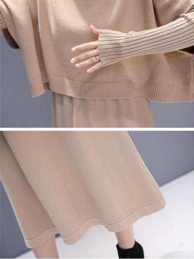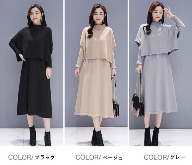 ワンピース セットアップ 無地 ニットセーター 長袖ワンピース 2点セット ロング丈 きれいめ 上品 レディース 体型カバー 着痩せ カジュアル お出かけ