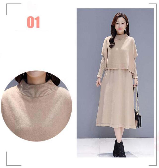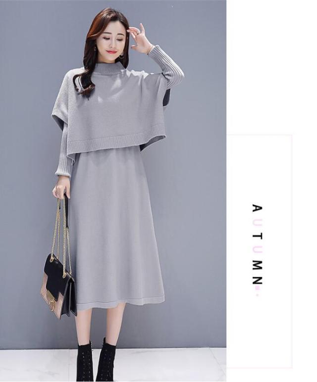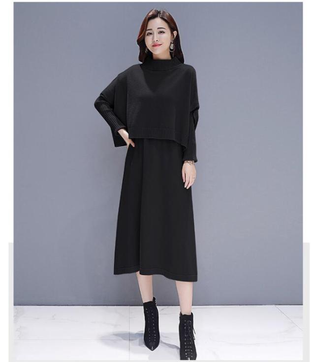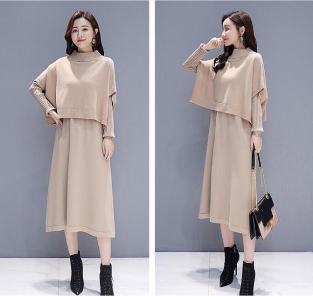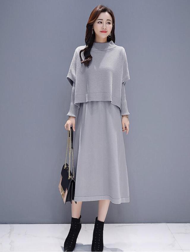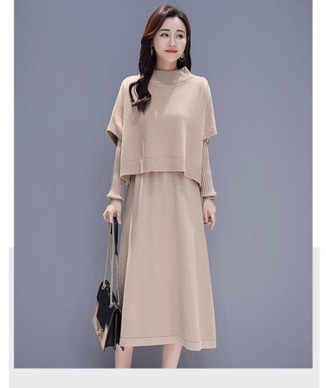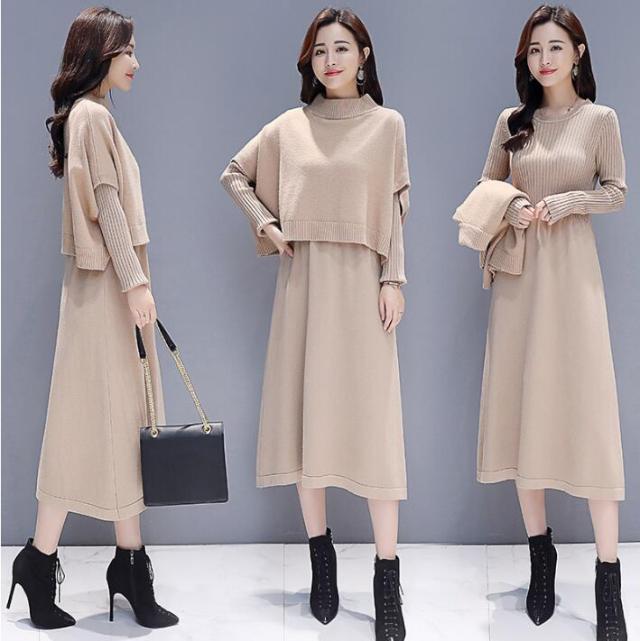 ワンピース セットアップ 無地 ニットセーター 長袖ワンピース 2点セット ロング丈 きれいめ 上品 レディース 体型カバー 着痩せ カジュアル お出かけ