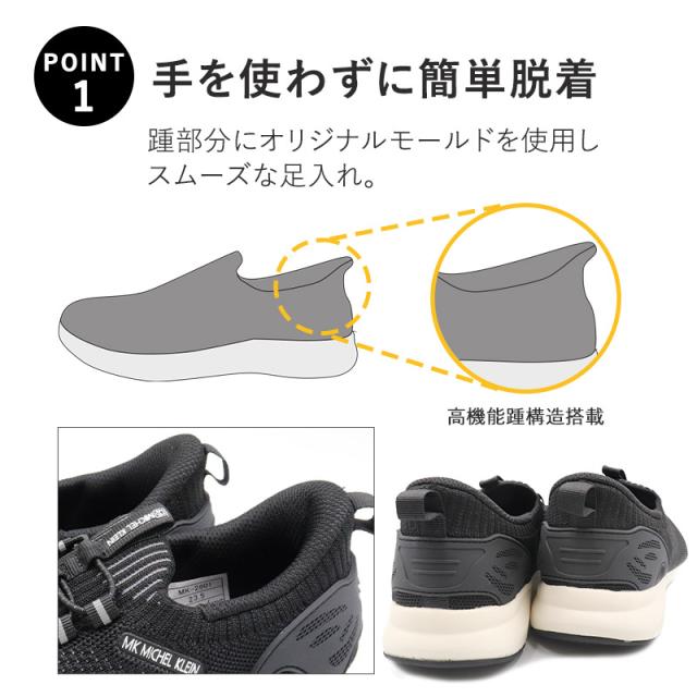 スニーカー レディース スリッポン MK MICHEL KLEIN MK2801 軽量 歩きやすい おしゃれ 黒 疲れない 軽い ウォーキング