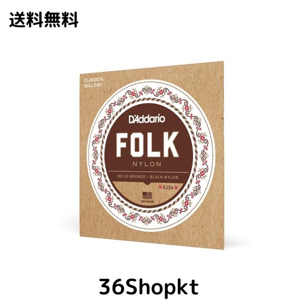 ◆商品名:D’Addario ダダリオ ボールエンドナイロン弦 Folk Nylon EJ34 80/20 Bronze/Black Nylon Trebles 【国内正規品】