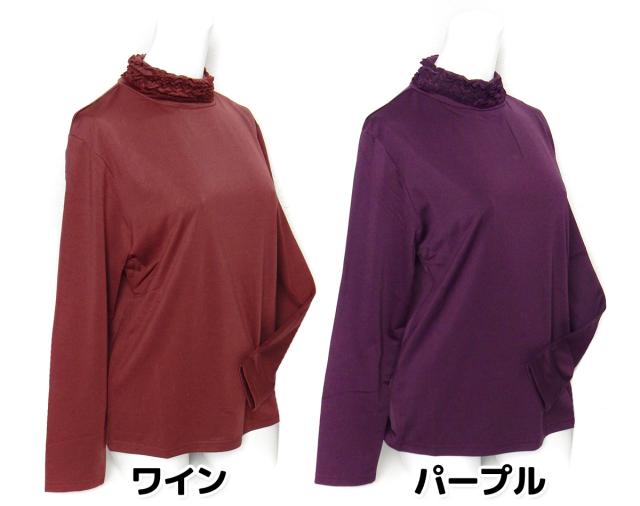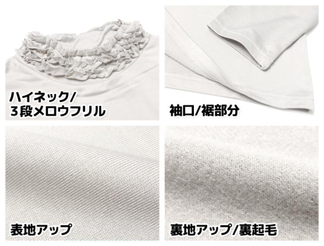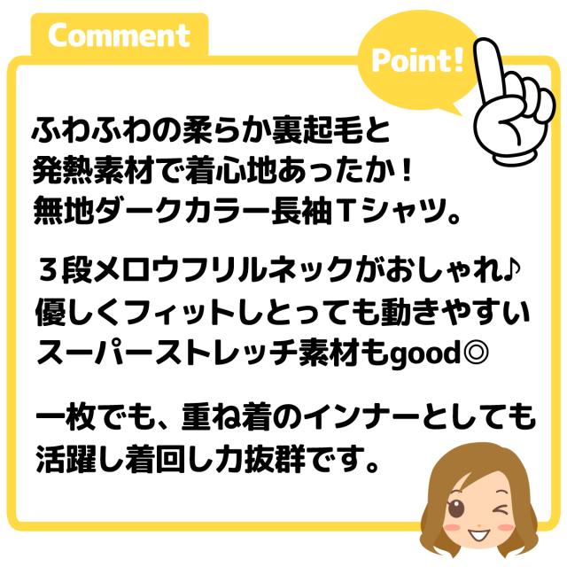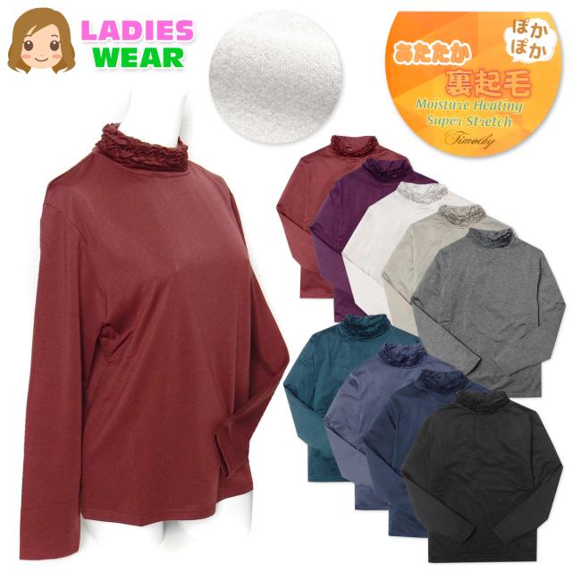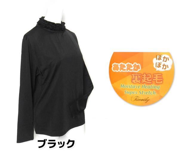 【送料無料】【大きいサイズ】婦人 レディース 裏起毛 発熱 長袖 Tシャツ 3段メロウフリルネック あったか素材 保温性 スーパーストレッチ 伸縮性 無地 LL 3L ygf-0140【メール便対応】