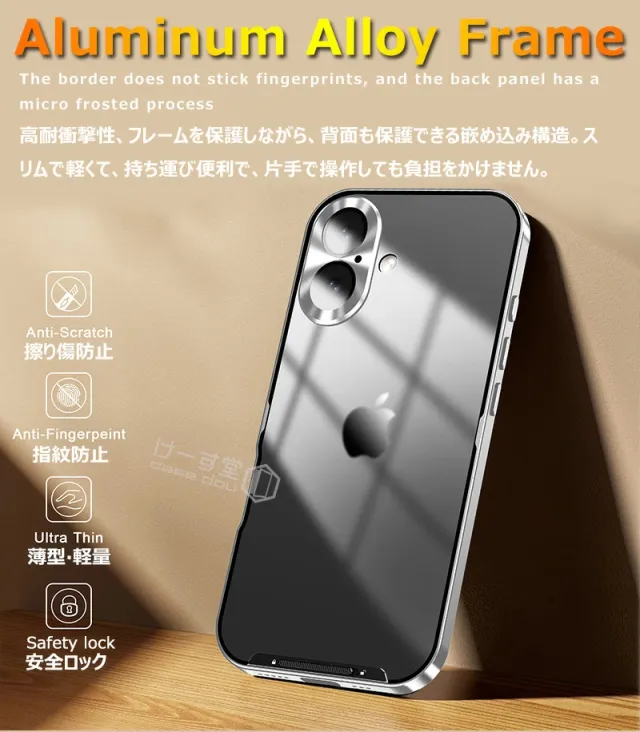 iphone16ケース アルミ合金製 iphone16proケース 一体型レンズ保護カバー アイホン16ケース アルミ バンパー クリア iPhone16 pro max カメラレンズ保護 アイホン16プロケース カメラフィルム アイホン16ケース おしゃれ 透明 カバー スマホケース 安全ロック付 金属ケース