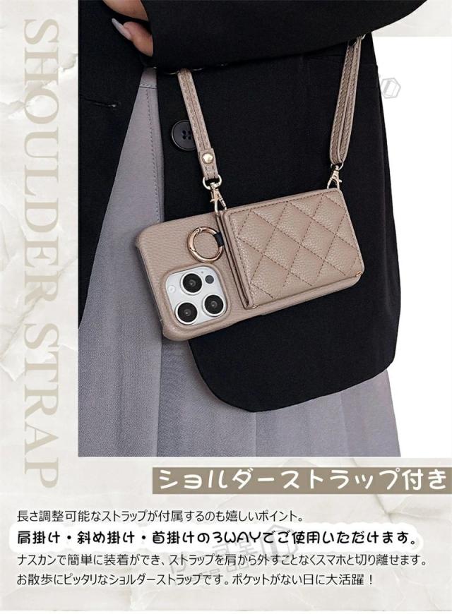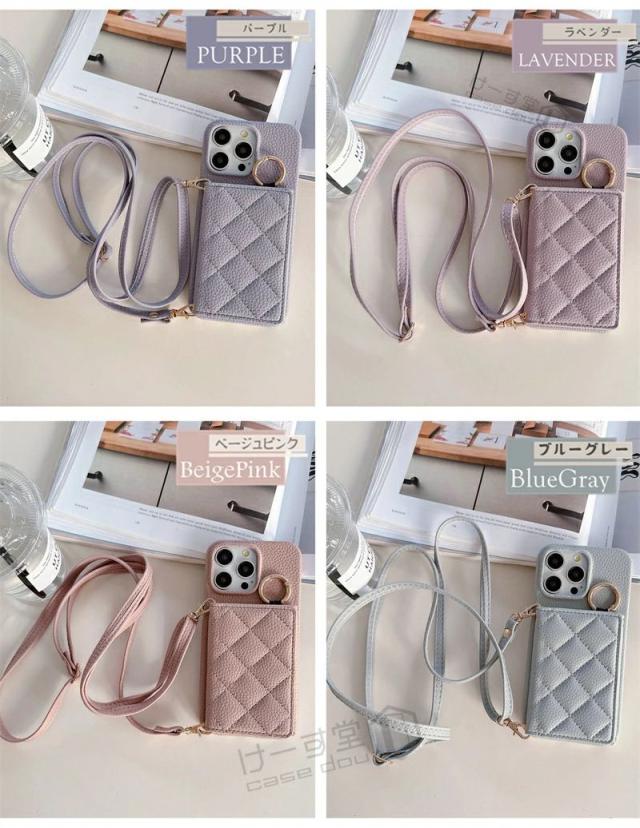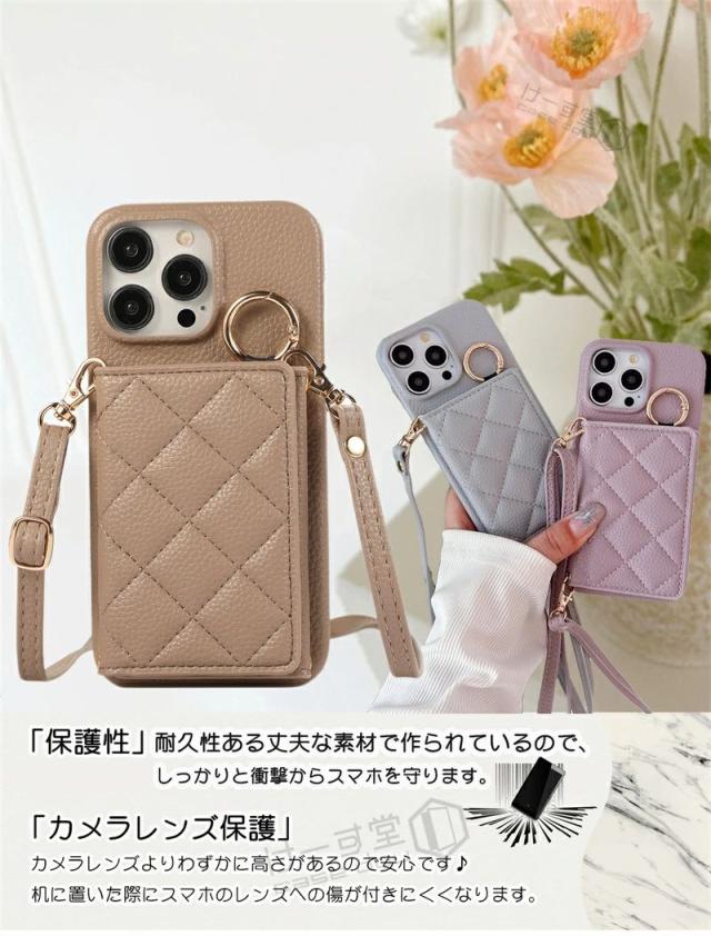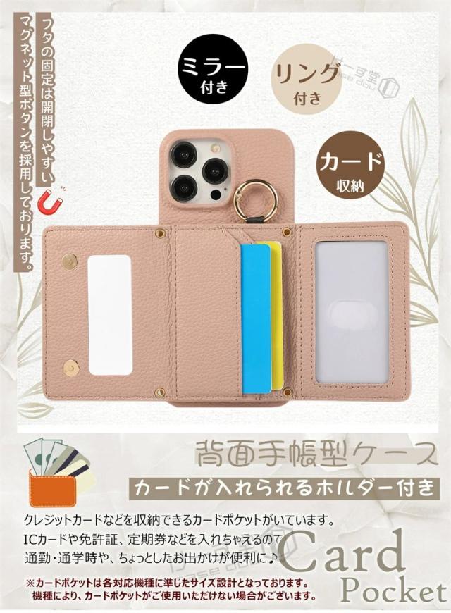 ミラー付き 4つ穴ショルダー iPhone16Pro スマホショルダー ストラップ付き アイホン 16 15 14 13 12 Pro Max スマホケース カード収納 肩掛け iPhone14 iphone15 ケース 12 13 11 pro max mini 第3世代 第2世代 携帯ケース ショルダー ミラー 鏡 背面手帳型 韓国 かわいい