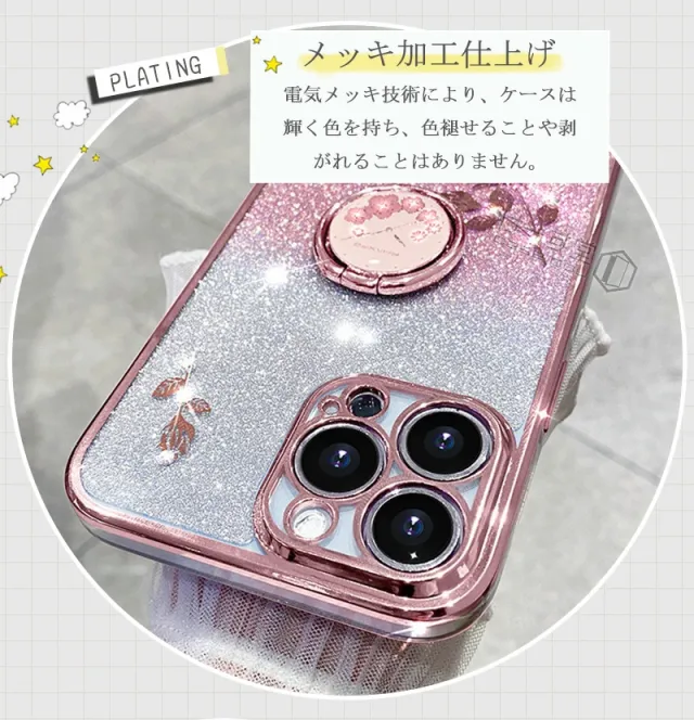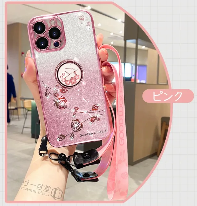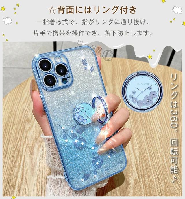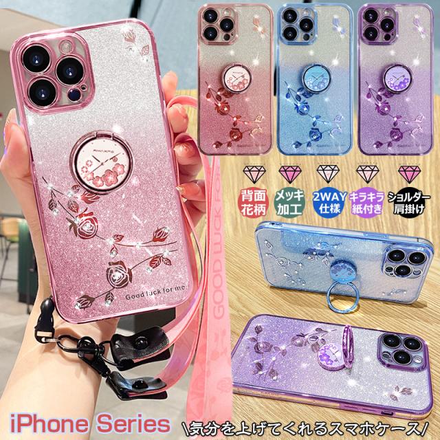ショルダー & リング付 iphone16 pro maxケース メッキ加工 iphone 13 mini 花柄 iphone14 plusケース ラインストーン iphone 15 11 SE3 SE2 XR X XS TPU 薄型 iphone12 PRO MAX おしゃれ スマホショルダー ストラップケース カバー クリア キラキラ グリッターシート付き