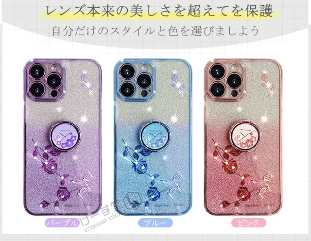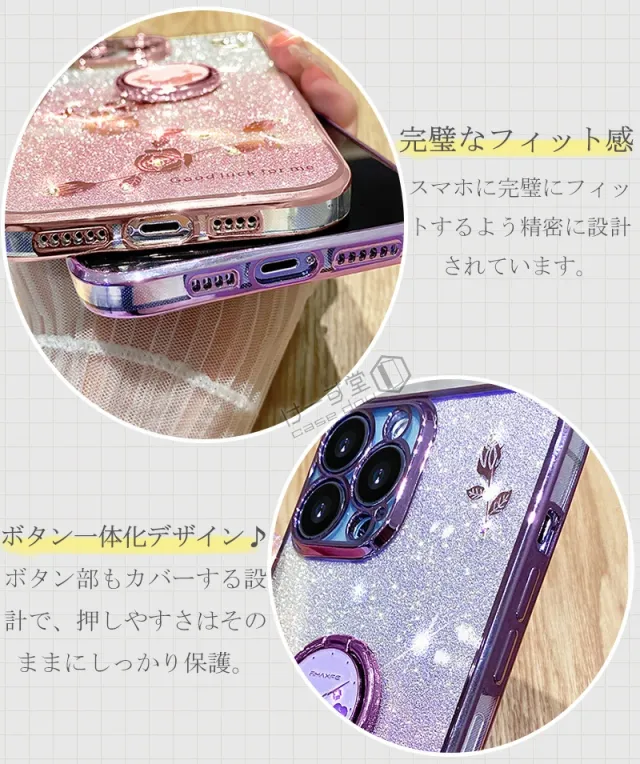 ■商品名:リング付き、クリア & キラキラのスマホケース