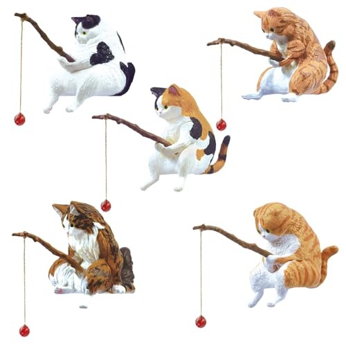 釣り猫 子猫釣り置物 猫釣り像 フィギュア 懸垂装飾品 猫モデル レジャー猫 猫釣り魚の水槽造景 水族館 雑貨装飾 庭の装飾 雰囲気を作る デコレーション 5点セット