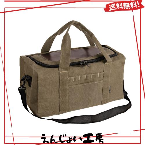 【大容量収納】焚き火台、薪ストーブ、七輪、薪 広葉樹、薪ばさみ、テント ストーブ、手斧、薪割り台、薪グリル、アウトドアコンロなど様々なキャンプ道具を収納できる防水帆布トートバッグです。アウトドアで収納力が優れているキャンプ 帆布バッグです。