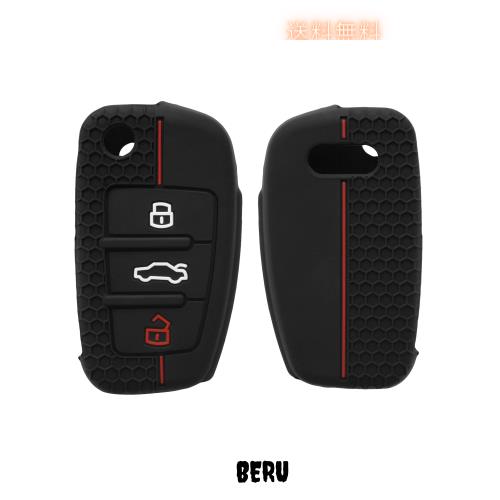 kwmobile キーカバー アウディ 3-ボタン 折りたたみキー対応 キーケース - 保護ケース 鍵ケース 車鍵 シリコン 黒色/赤色