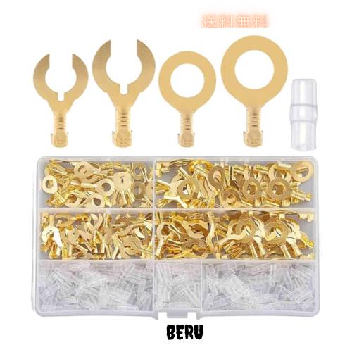 クワ型 丸型 端子セット 6mm 8mm 真鍮 圧着端子 400個入 絶縁スリーブ付き アース取り ケーブル 配線接続 端子 ターミナル コネクター 自