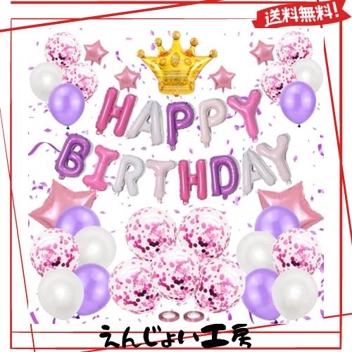 ?セット内容(取り扱いの注意:対象年齢6+以上):?HAPPY BIRTHDAY×各1文字(40cm) ?クラウン(王冠)風船1個(45cm) ?紙吹雪風船10個(30cm) ?星風船大2個(約45cm) ?星風船小4個(約12cm) ?カラー風船10個(約30cm) ?ドット型両面シール2個 ?リボン2個