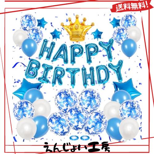 ?セット内容(取り扱いの注意:対象年齢6+以上):?HAPPY BIRTHDAY×各1文字(40cm) ?クラウン(王冠)風船1個(45cm) ?紙吹雪風船10個(30cm) ?星風船大2個(約45cm) ?星風船小4個(約12cm) ?カラー風船10個(約30cm) ?ドット型両面シール2個 ?リボン2個