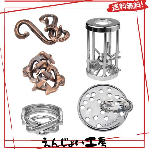 HUAZONTOM 知恵の輪 知恵おもちゃ 5点セット 難易度6〜3 リングパズル 知恵玩具 大人 子供 謎解き 暇つぶしグッズ 立体パズル 知育 おも
